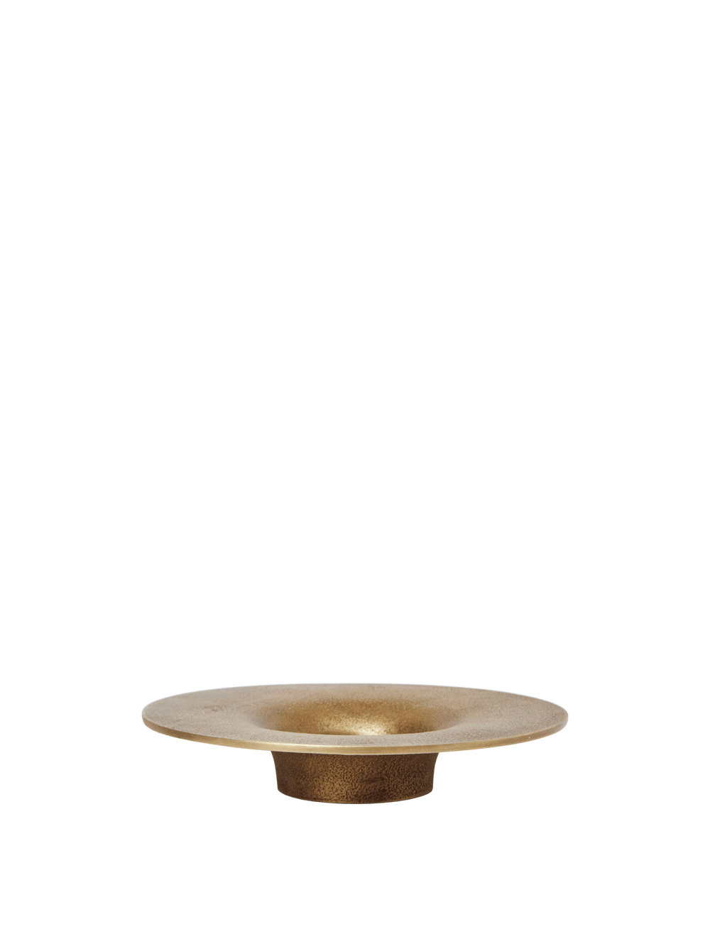 Soothe-bloklysestagen skiller sig ud med sin underspillede elegance og nænsomt formede design. Den er fremstillet af støbt aluminium med en tekstureret sandstøbt og messingbelagt overflade, og dens bløde kanter og subtile kurver skaber en stille tilstedeværelse. Den er designet til at holde et bloklys og giver en følelse af balance og ro i alle rum, hvilket gør den perfekt til både hverdagen og til at skabe julestemning.